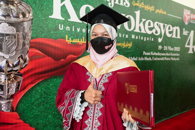 Saptuyah, 40, successfully graduated today at the 45th Universiti Putra Malaysia (UPM) Convocation Ceremony.